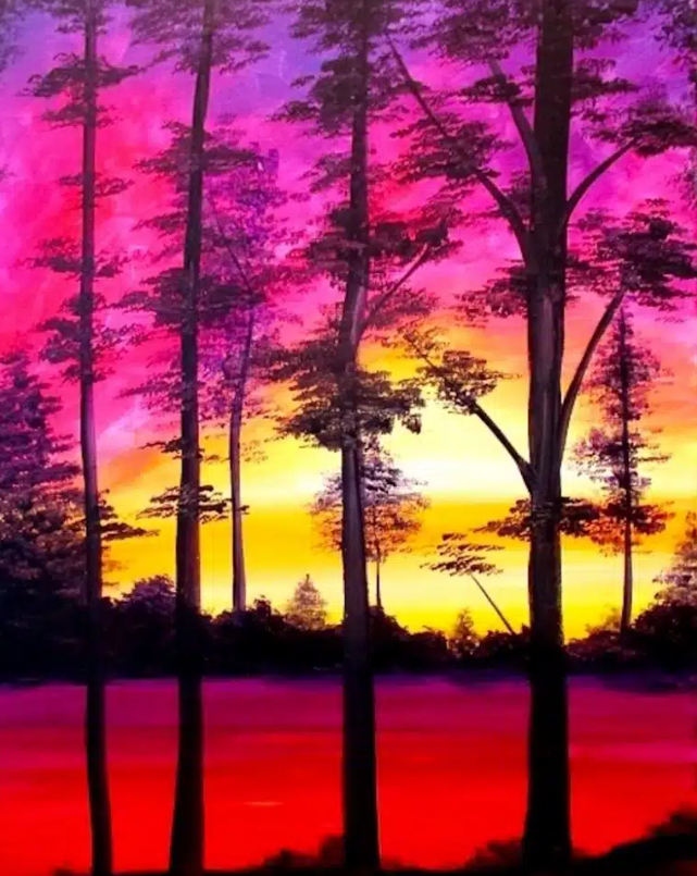 Join us at Monarcas in Cape Coral for a relaxing canvas and wine night as we paint Sunset Through The Trees. Sip, unwind, and let your creativity shine while you turn warm colors and peaceful vibes into your own stunning masterpiece! 🎨🍷