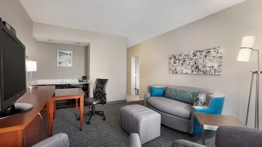 Our newly renovated Courtyard by Marriott Fort Myers Cape Coral boasts newly renovated guest rooms and public spaces ideally situated near pristine Gulf Coast beaches and downtown Fort Myers. Convenient for travelers, our hotel is near the Fort Myers airport, Southwest Florida International (RSW). Explore popular destinations like CenturyLink Sports Complex, Harborside Event Center and Edison Ford Winter Estates. Stay in our Fort Myers hotel near JetBlue Park, home of Boston Red Sox spring training. Start your day satisfied with a tasty breakfast sandwich & specialty Starbucks® beverage at The Bistro, then return for an evening meal paired with bar service. Following an action-packed day, retreat to relaxation in our brand new guest rooms & suites with free high-speed Wi-Fi, modern TVs and signature Marriott bedding. Work up a sweat with a brisk workout in our 24-hour fitness center, then cool down while making a splash in our outdoor pool. Enjoy all the Courtyard Fort Myers Cape Coral hotel has to offer.
