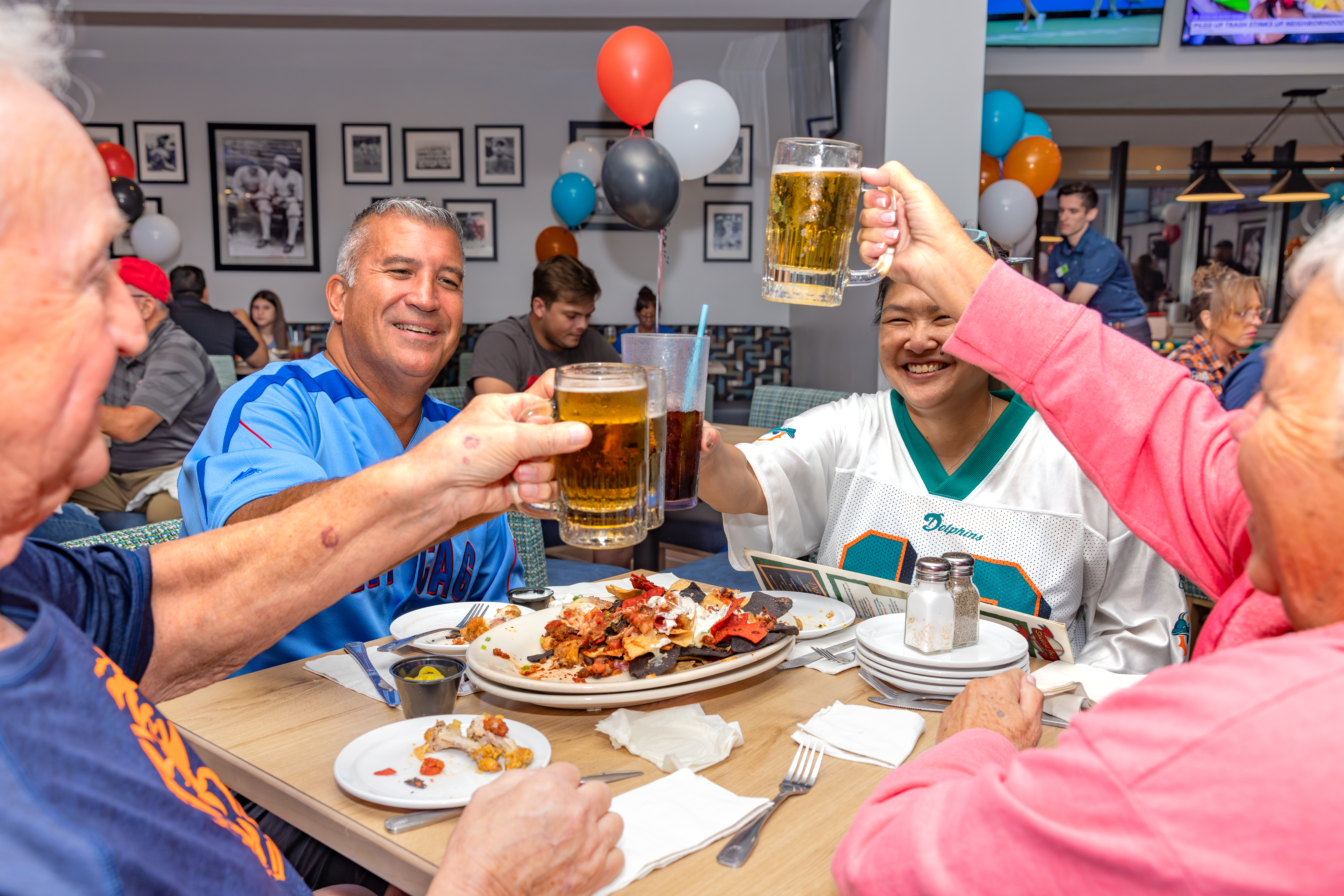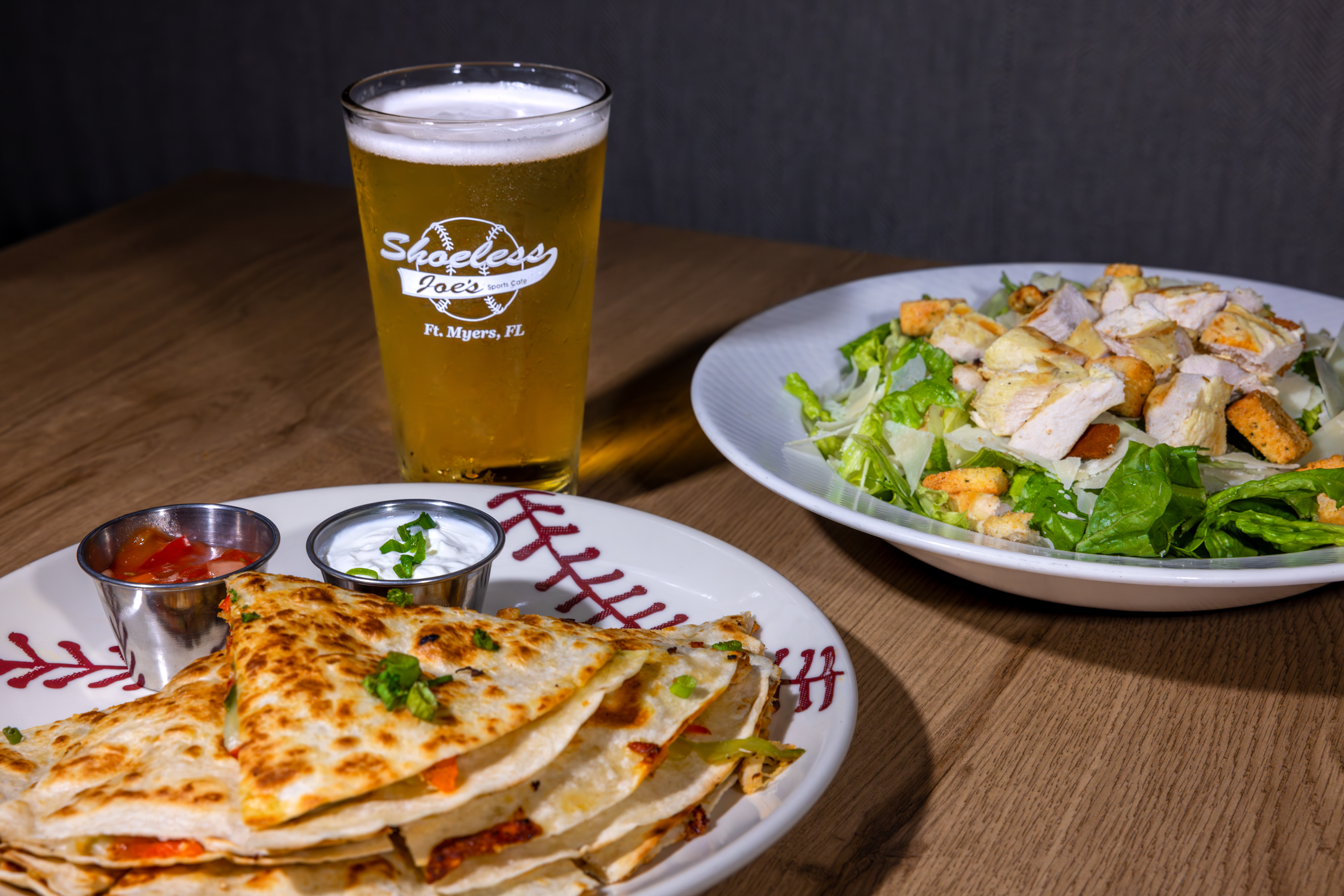 Shoeless Joe’s Sports Cafe honors the baseball legend by delivering a home run sports bar experience where you can relax, enjoy great eats, and catch all the action. With over 40 big-screen TV’s and a lively atmosphere, we’re the top spot in Fort Myers for sports fans and Happy Hour enthusiasts.