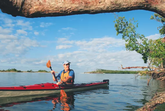 Back bays teem with wildlife and photo ops. Dolphins often playfully approach kayakers; manatees surface at your stern and sometimes rub their hairy noses on your paddle blade.