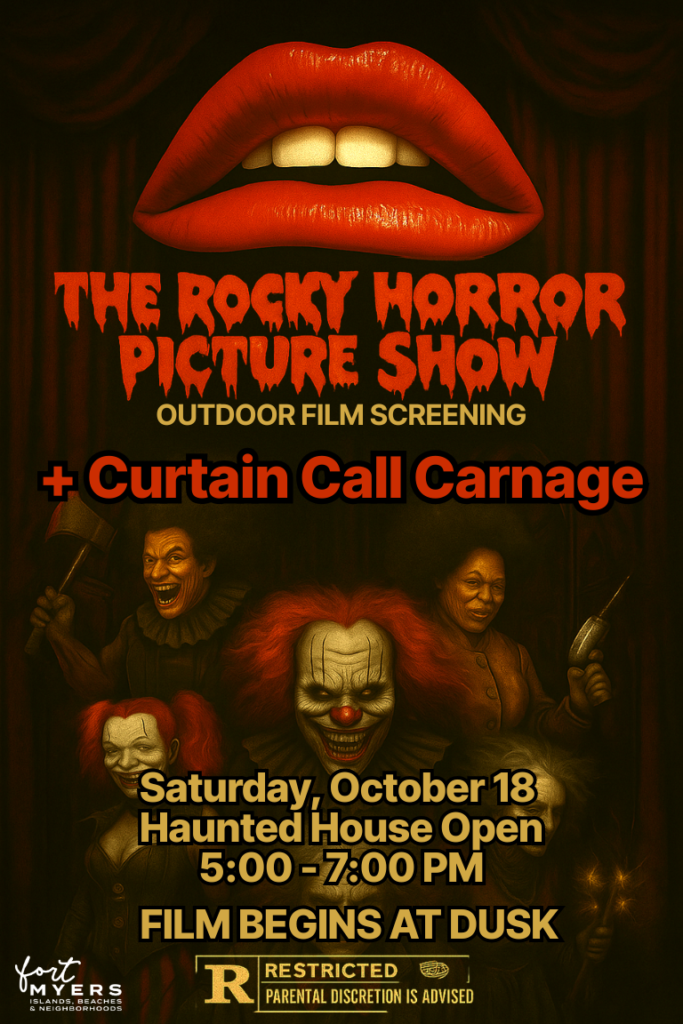 Your ticket includes admission to both the Rocky Horror Picture Show Outdoor Movie Event and an exclusive preview of Curtain Call Carnage—a brand-new haunted maze where theatre collides with terror. Expect costumes, laughs, interactive fun, and truly gruesome scares. Celebrate the Alliance for the Arts’ 50th Anniversary with the ultimate Halloween kickoff: Exclusive preview of Curtain Call Carnage—a brand-new haunted maze that mixes theatre with terror And the fun of the Rocky Horror Picture Show
