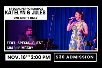 Step into an intimate, soul-stirring evening with Josie Music Award-nominated duo Katelyn & Jules. Playful, captivating, and deeply moving, they’ll make you laugh, sway, and get lost in your feelings. Julian's use of Rhodes and soft piano, combined with Katelyn’s velvety, sultry vocals, blends the smooth charm of jazz with the heartfelt warmth of indie favorites. Enjoy an evening of bass, drums, keys, vocals, and a few surprises. Including Special Guest, Charlie McCoy.