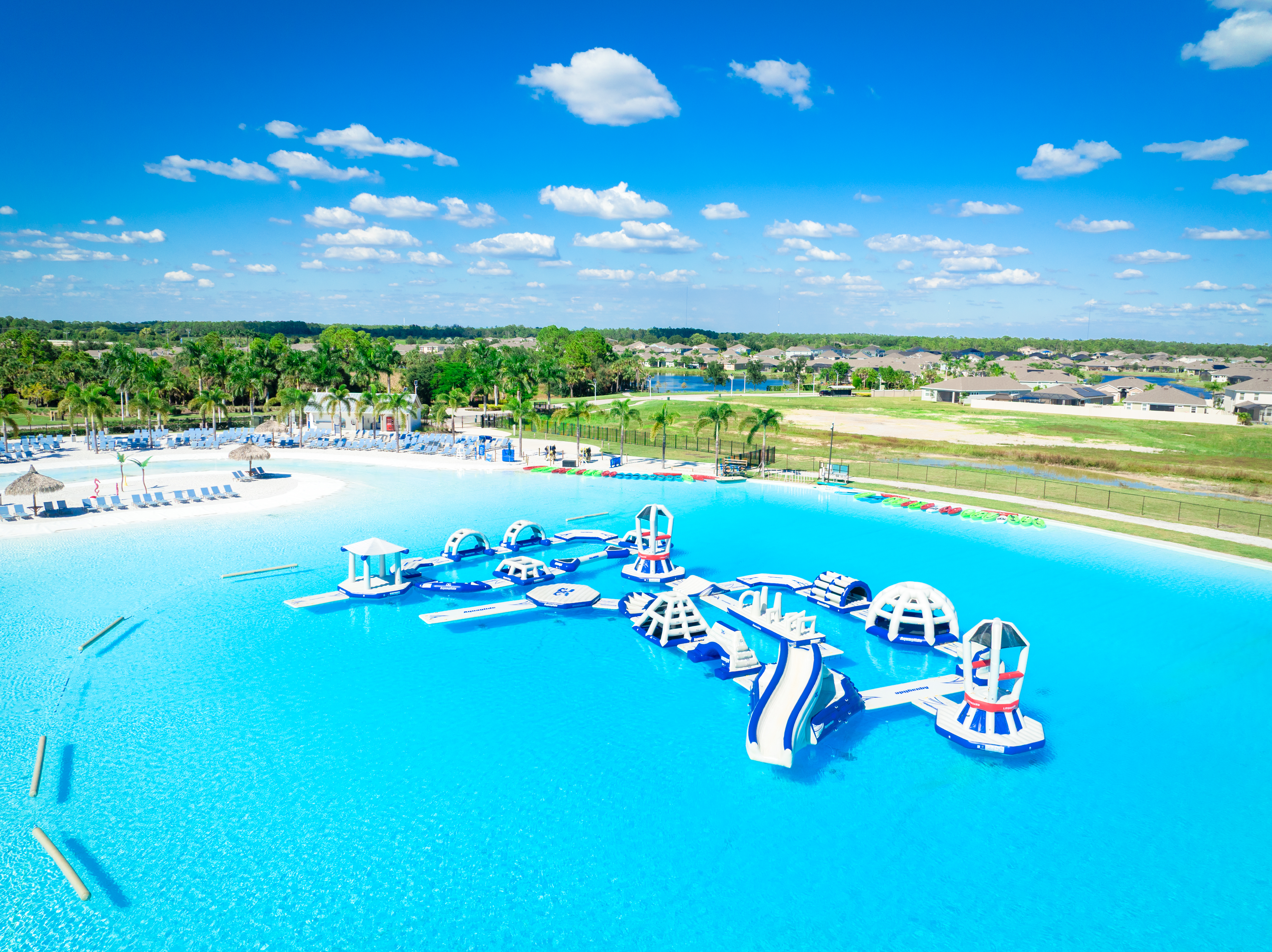 Brightwater Lagoon, located in Fort Myers, FL, is 5-acres of tropical oasis offering clear blue waters perfect for swimming, sunning and sipping perfection. Surrounded by sandy beaches, it provides an escape with luxurious cabanas, a floating obstacle course and family-friendly amenities. With year-round events and activities, Brightwater Lagoon is a unique destination for relaxation, adventure, and community fun.