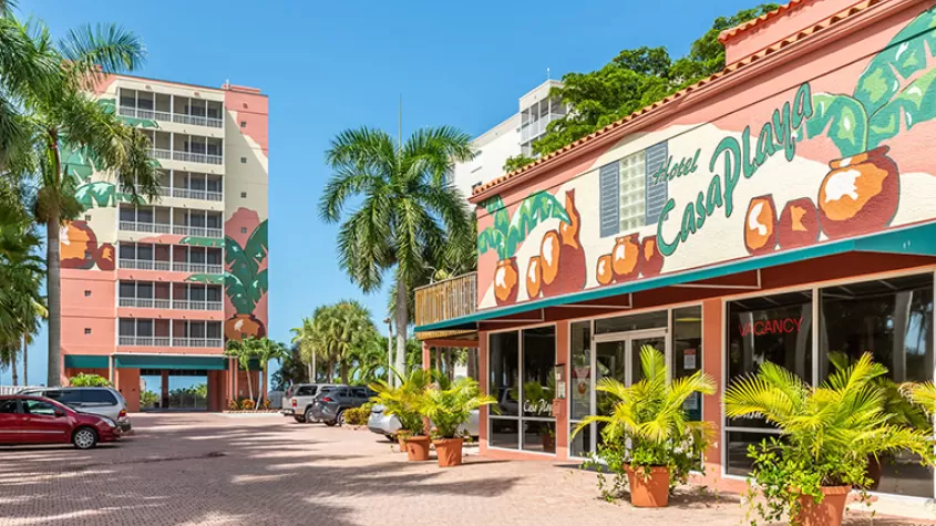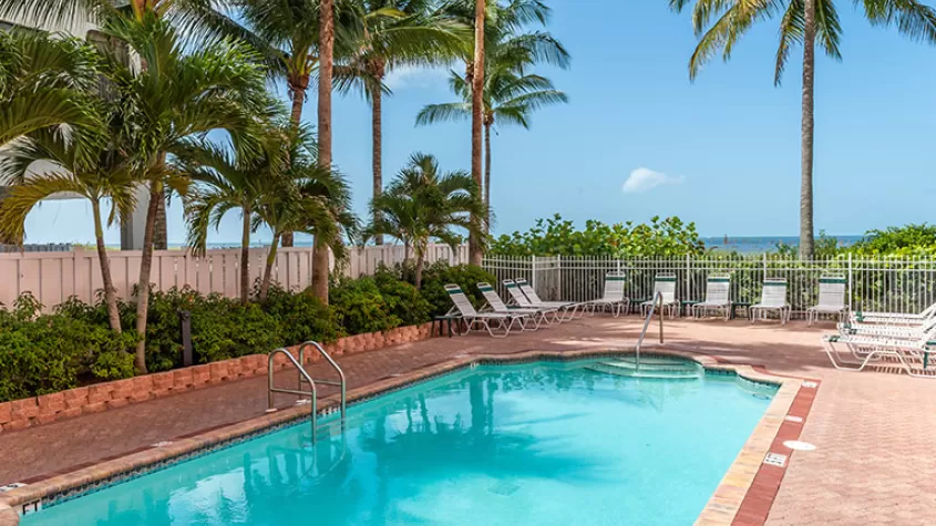 This three-star beachfront resort is located on the exclusive north end of Estero Island on Fort Myers Beach. The resort is pet-friendly (some restrictions apply). Shopping, restaurants and nightlife are an easy 10-minute stroll from the resort.