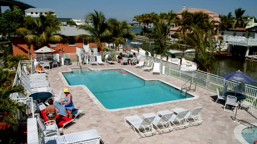 Winner of the best inn on Fort Myers Beach! We are nestled on the bay in the heart of Estero Island's downtown district. A few steps away from the bay, beach, one-of-a-kind shopping, and several activities. Newly renovated suites and rooms with updated decor, flat screen TVs and free wireless. Heated pool and spa. Marina dockage available. Matanzas on the Bay restaurant and Petey's Upper deck onsite.