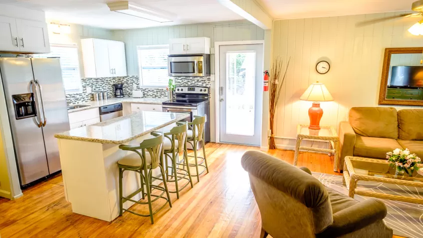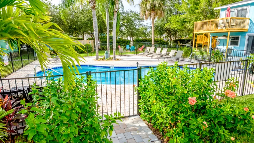 Myerside, is a pet friendly boutique hotel with apartment size suites just steps from the beach. Enjoy our heated pool, TikiHut, fire pit and volleyball court. A King in every master and full size kitchens! Free parking, wifi throughout, flat screen tv's, beach supplies, free access to the waterpark and Rec Center next door, where you can enjoy a fitness center, tennis and indoor sports. Restaurants and shops are all a short walk away, so park your car and relax. For any stay of 2 nights or more, get 2 free passes to either a kayak or walking tour at Fort Myers Beach Mound House. Our 1 acre property is the perfect wedding destination! Come plan your wedding with us! Let Myerside Resort and Cottages be your Fort Myers Beach vacation destination!