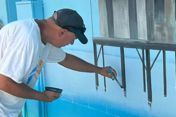 Inspired by Pine Island’s untouched nature, this mural portrays the breathtaking aquatic preserves that surround the island, as well as popular activities including fishing, boating and wildlife viewing.